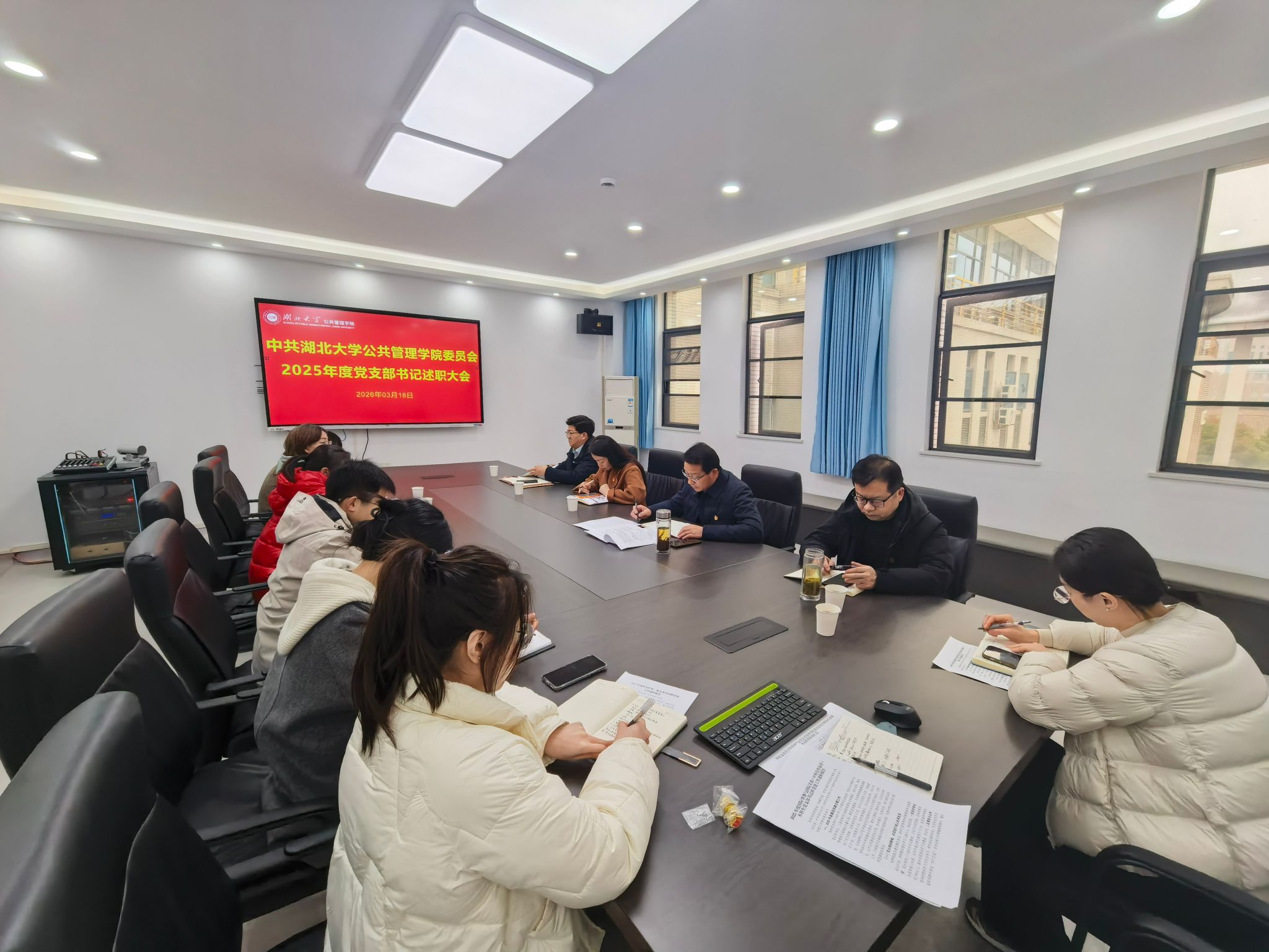 3月18日,学院召开2025年度基层党支部书记述职评议会。学院领导班子成员、党委委员、各党支部书记参加会议。党委书记祝逸明主持会议。