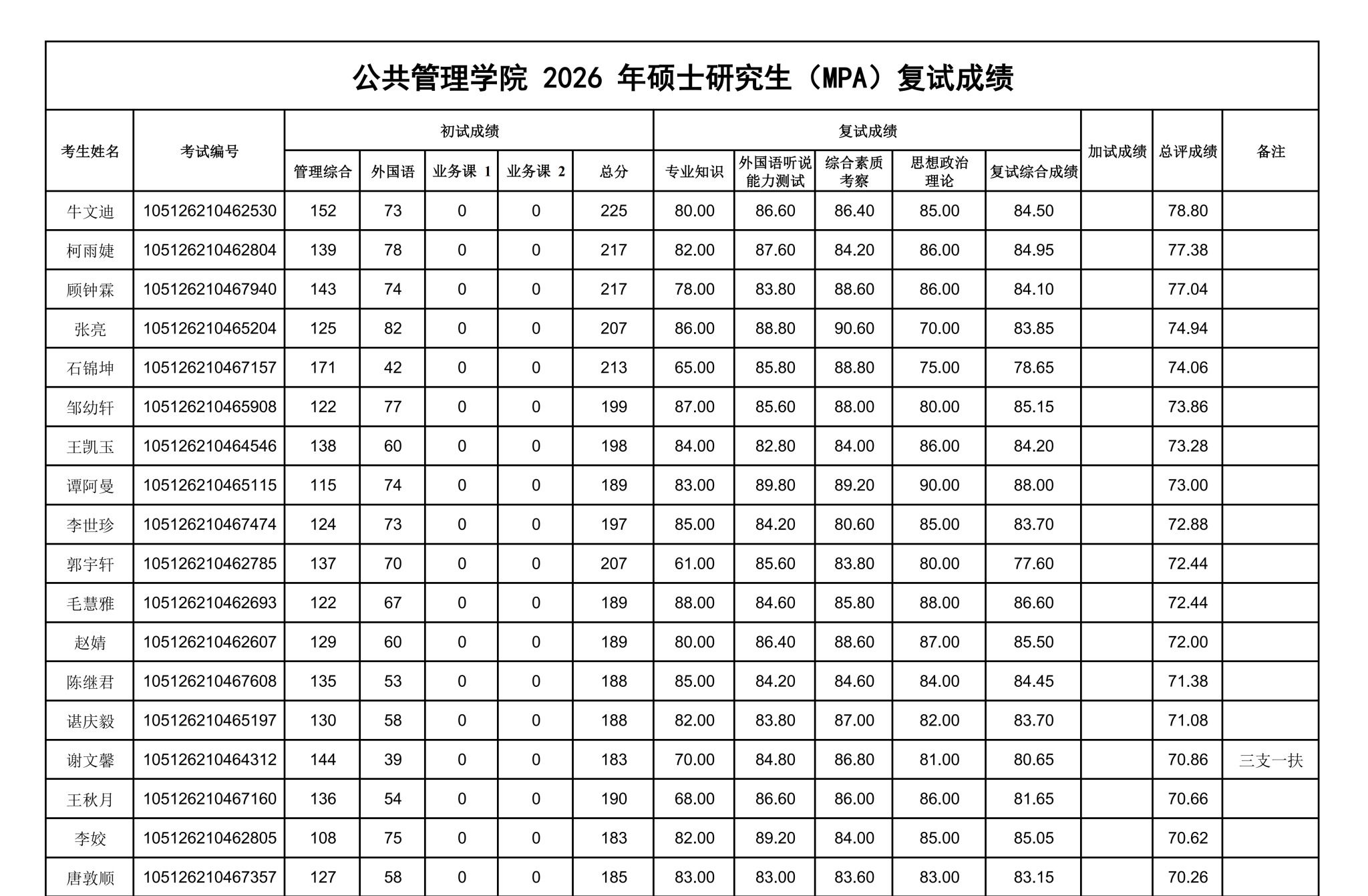 伟德国际1946源于英国2026年硕士研究生(MPA)复试成绩公示