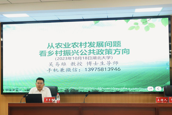 讲座上,吴易雄教授围绕农业面临的突出难题、农业面临的主要问题以及乡村振兴公共政策方向三个方面,向学院师生分享了自己多年调研得出的宝贵经验。他提出需优化城乡空间体系、构建融合发展产业体系、构建基础设施服务体系、完善政策支撑体系等乡村振兴公共政策方向,并鼓励公管师生扎根基层,潜心调研。