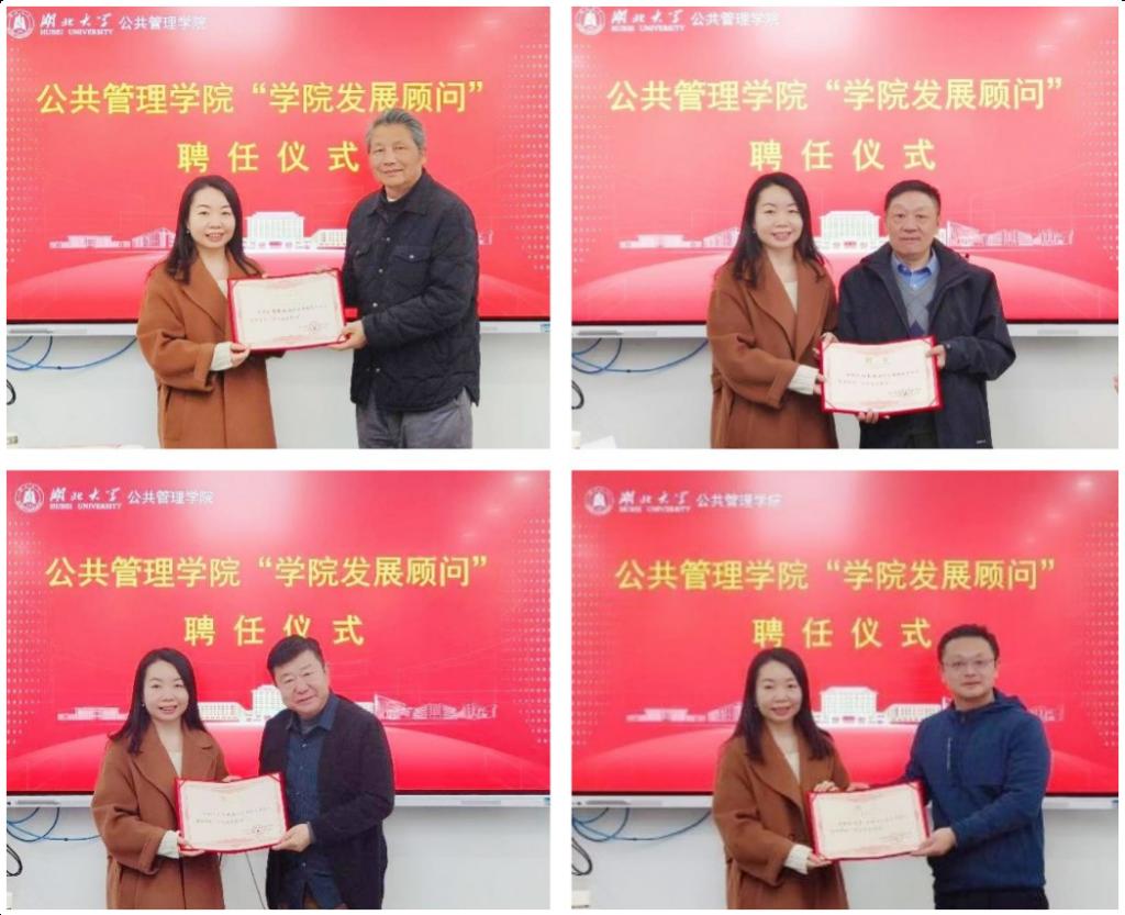 李荣娟教授向四位受聘专家颁发“学院发展顾问”聘书并表示诚挚感谢。她指出,组建“学院发展顾问团”是落实学校“强院行动”要求、加强学院中长期发展战略规划、促进学院高质量发展的重要举措,诚请专家团队为学院学科发展、专业建设、科学研究、创新改革等重要事项把脉定向、出谋划策。受聘专家一致表示,将充分发挥自身优势和特长,助力学院实现更大突破。