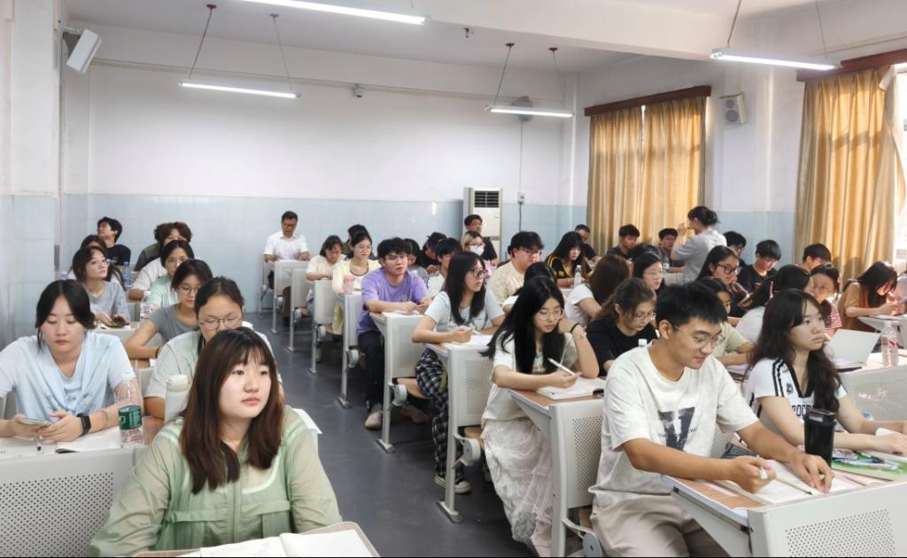 学院领导深入课堂检查新学期教学运行情况 作者:发布时间:2025年09月08日 9月8日上午,学院党委书记唐良敬、副院长张小进、向良云一行深入课堂,对学院开学第一课教学情况进行巡视检查,并共同听取了王美文教授为2024级行政管理专业讲授的《公共组织学》课程。 同日,院领导一行就新学期教师到岗、学生到课、教学运行等情况展开全面巡查,从检查情况来看,教师与学生课堂状态良好、教学秩序井然,展现了学院良好的教风和学风。 (审稿:张小进)