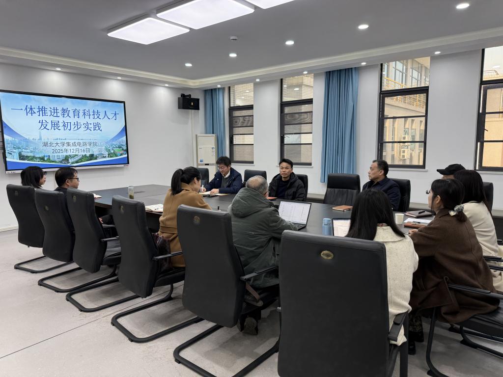 2025年12月16日,教育科技人才一体发展研究中心首次专题研讨会在逸夫人文楼C523会议室召开。江城实验室战略研究院秘书长熊炳桥、伟德victor1946集成电路学院执行院长汪宝元、副院长万厚钊、师范学院于洋教授、计算机学院杨兵教授以及伟德国际1946源于英国领导班子、研究中心骨干成员参会。
