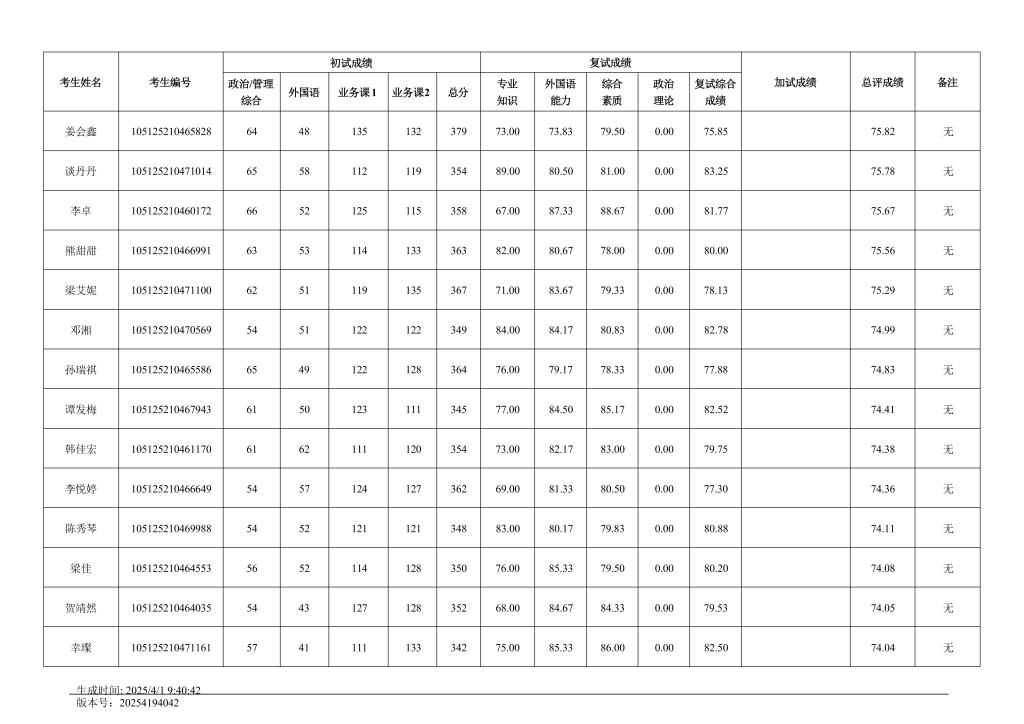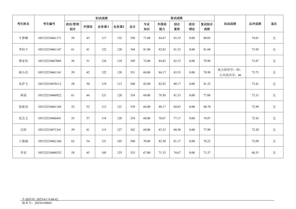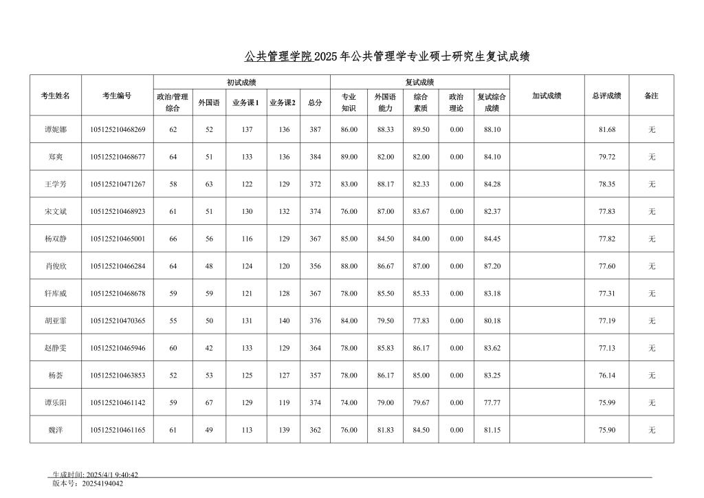 伟德国际1946源于英国2025年公共管理学专业硕士研究生复试成绩公示