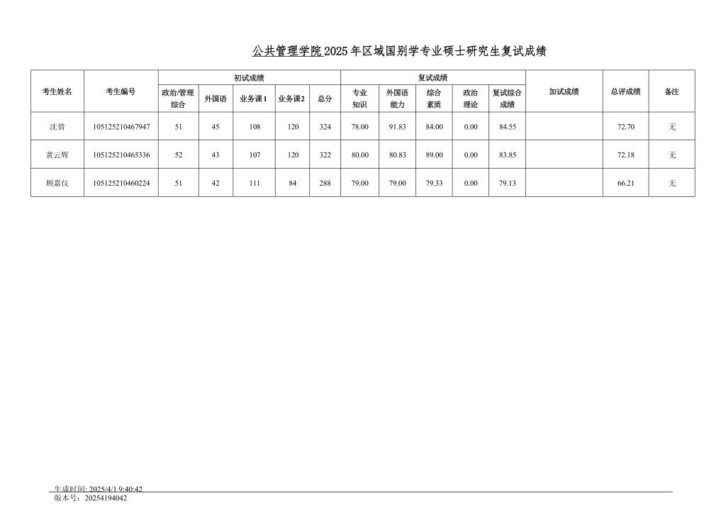 伟德国际1946源于英国2025年区域国别学研究生复试成绩公示
