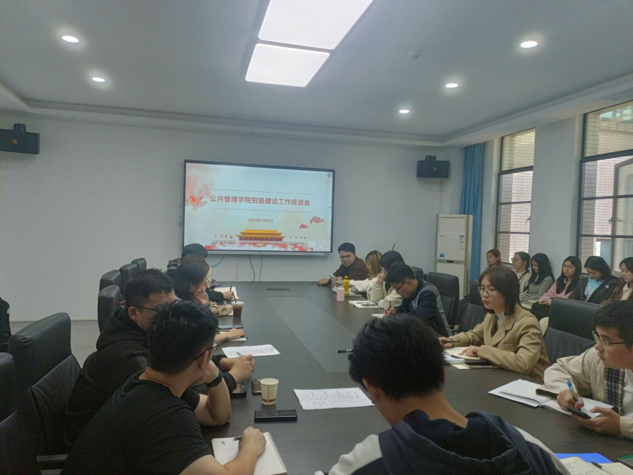 11月8日下午,学院召开班级建设工作座谈会。学院党委副书记肖勇、彭文雅及研究生、本科生各班班长、团支书、学习委员参加会议。辅导员廖紫冰主持座谈会。