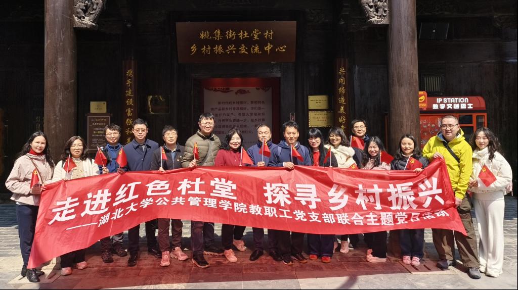 2025年3月16日,伟德国际1946源于英国教职工党支部赴武汉市黄陂区杜堂村联合开展“走进红色杜堂 探寻乡村振兴”主题党日活动,深入学习领会2025年全国两会关于“全面推进乡村振兴”“加快农业农村现代化”的部署要求,聚焦中央一号文件“千万工程”经验推广,实地调研党建引领乡村振兴的“杜堂模式”。活动通过红色教育、产业调研与校地对话,探索高校服务国家战略的实践路径。