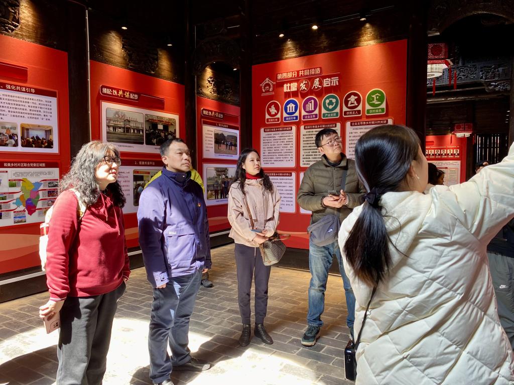 杜堂村曾是武汉最北端的“空心村”,通过“党建+能人+产业”模式实现蝶变。大家实地考察木兰花乡景区、葛家湾民俗文化街等农旅融合项目,深入了解“三乡工程”实践(市民下乡、能人回乡、企业兴乡),深刻体会到党建引领下“空心村”的蜕变逻辑:第一,以“党建+产业”盘活资源。通过土地流转、合作社模式,将闲置农房变民宿、低效用地变景区,形成苗木花卉、非遗文化、夜经济等多元产业链。第二,以“党建+文化”赋能发展。依托木兰传说非遗IP,打造木兰不夜城等文旅融合场景,实现文化传承与经济效益双赢。第三,以“党建+生态”守护乡愁。坚持生态优先,通过村规民约推动人居环境整治,构建“白墙青瓦映田园”的美丽乡村图景。
