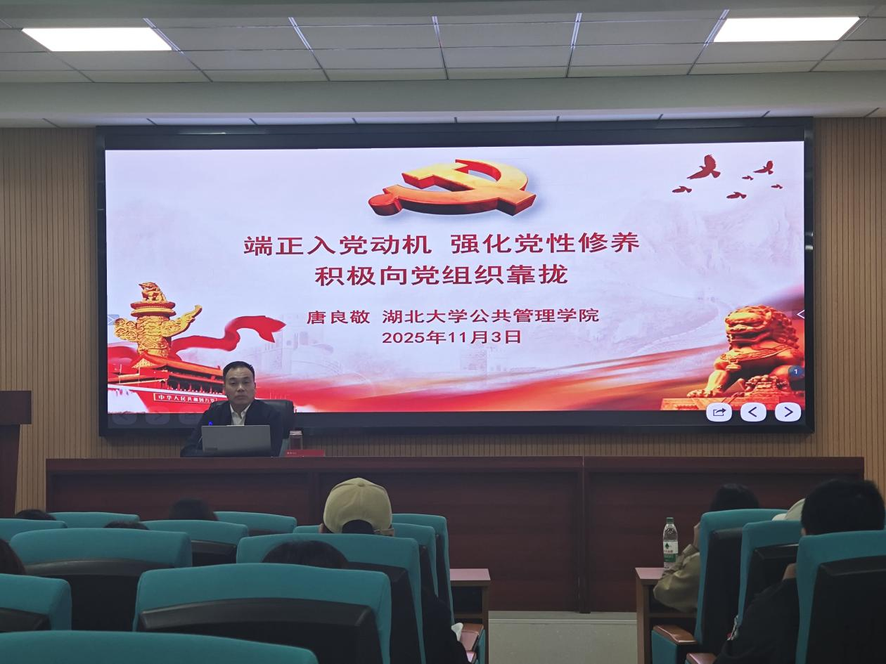 在第二阶段的辅导报告环节中,唐良敬书记以深刻的理论阐释、鲜活的实践案例,为学员们系统梳理了如何端正入党动机,强化党性修养。他着重强调,青年大学生要在理论学习中强化政治意识、提升理论素养、增强时代责任感,自觉把个人理想融入国家发展大局,在服务人民、奉献社会的生动实践中绽放青春光彩。整场报告主题鲜明、内涵丰富、催人奋进,赢得了学员们的阵阵热烈掌声。