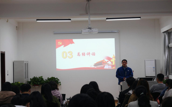 最后,院党委副书记袁新作总结讲话。他代表学院党委对结业的学员表示祝贺,并围绕如何端正入党态度、加强理论学习以及理解入党誓词等内容,向全体学员提出四点要求:一是加强学习,不断提高理论和实践的学习;二是团结同学,增强同学与学院、学校之间的凝聚力;三是争做同学之间的好榜样,以实际行动影响周围的同学;四是拥有服务奉献精神,牢记全心全意地为人民服务的宗旨,并付诸实践。