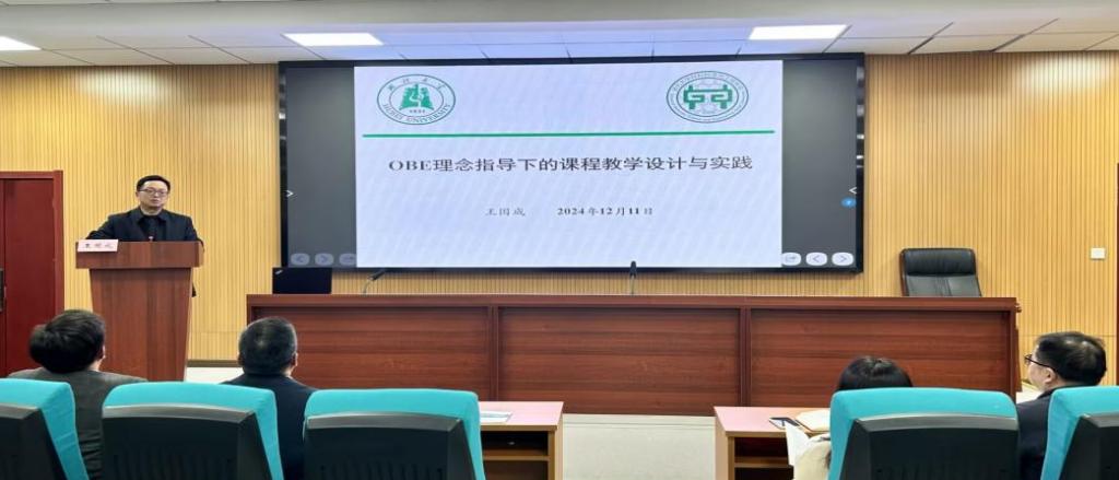 为扎实推进新一轮本科教育教学审核评估工作,12月11日下午,学院邀请本科生院副院长王国成教授在逸夫楼C座518会议室举办“OBE理念指导下的课程教学设计与实践”的专题报告,全体学院领导、全院教师参加报告会,学院党委书记唐良敬主持会议。
