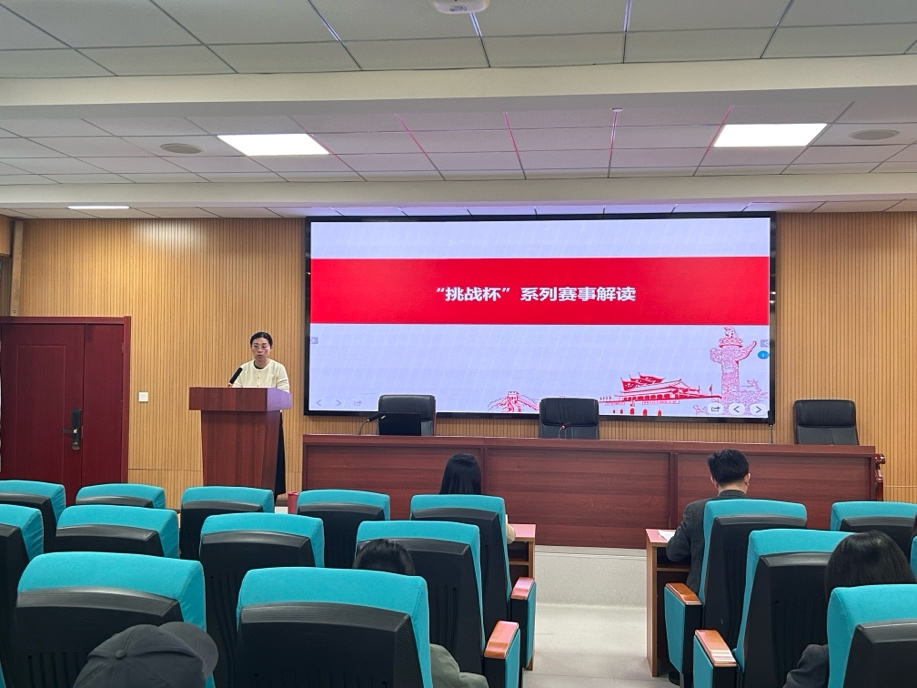 党委副书记余欢总结了新学期以来的学生日常管理工作,并详细解读了“挑战杯”全国大学生系列竞赛的赛事定位、参赛规则、选题方向等,鼓励学院老师指导学生积极参与。